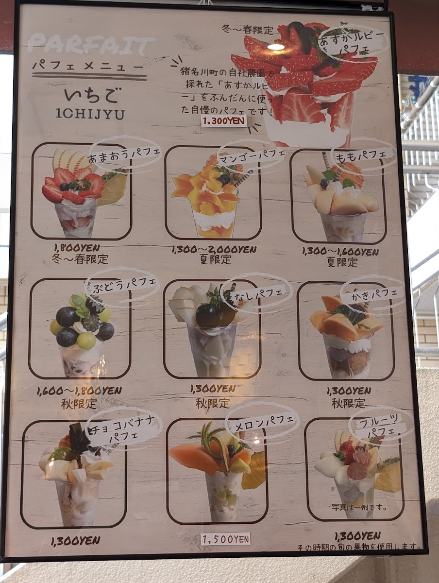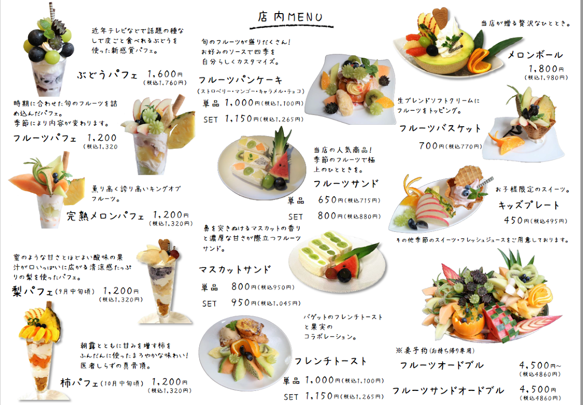 いちこ ICHIJYU FRUIT CAFE is a delightful haven for fruit enthusiasts situated in Kawanishi, Hyogo. With its vibrant atmosphere and beautiful interior, this café specializes in an array of fresh fruit dishes that highlight seasonal flavors. The menu features exquisite items such as peach parfaits and delectable fruit sandwiches, including melon and mandarin options, that promise a burst of sweetness in every bite.
